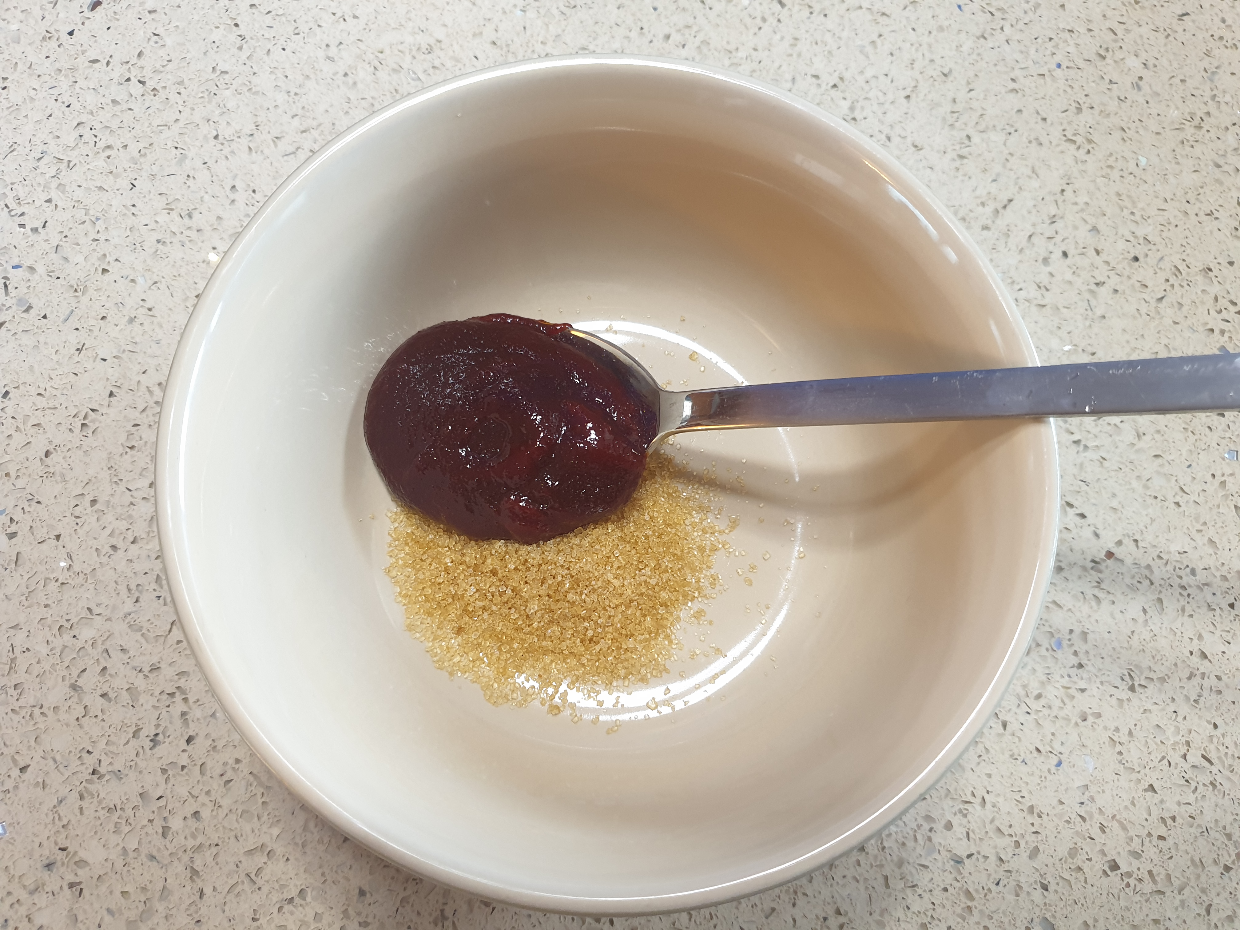거기에 설탕 한숟가락과 고추장 한숟가락을 넣어 둡니다