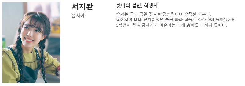 왠지 차가워 보이는 인상에 말수도 적어 첫인상이 도도해 보인다는 소릴 듣지만,
